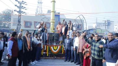 वस्त्रनगरी भीलवाड़ा में महेश सर्किल पर हुआ 36 फीट ऊंचे महेश त्रिशूल का विधिवत लोकार्पण