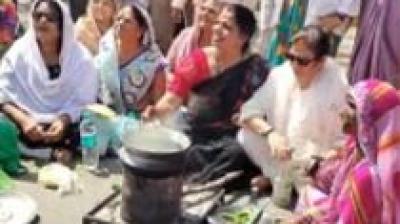 गैस संकट पर कांग्रेस का प्रदर्शन, खाली सिलेंडर और जलता चूल्हा लेकर किया विरोध