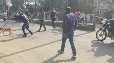 अवैध बूचड़खानों के खिलाफ हिंदू संगठन का निगम घेराव, पुलिस रोकने पर हनुमान चालीसा पाठ