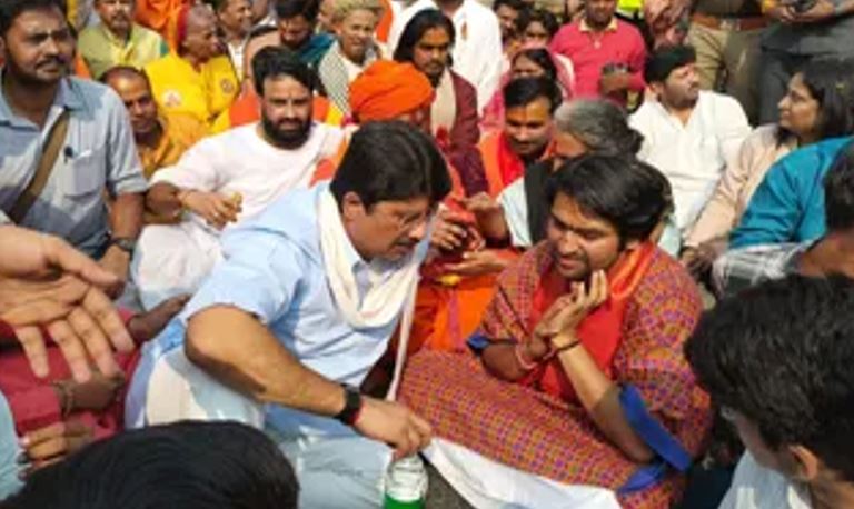 राजा भैया ने थामा बाबा बागेश्वर का हाथ, पदयात्रा में बेटों के साथ दिया साथ
