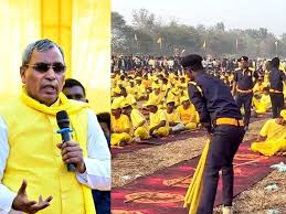 आजमगढ़|उत्तर प्रदेश की योगी सरकार में कैबिनेट मंत्री और सुभासपा अध्यक्ष ओम प्रकाश राजभर एक बार फिर अपने 'पीले अंदाज' को लेकर चर्चा में हैं। आजमगढ़ के अतरौलिया स्थित खजुरी गांव में आयोजित एक कार्यक्रम ने सियासी गलियारों में हलचल पैदा कर दी है। यहां राजभर की राष्ट्रीय सुहेलदेव सेना (आरएसएस) का विस्तार करते हुए ढाई हजार से ज्यादा युवाओं को न सिर्फ संगठन से जोड़ा, बल्कि उन्हें 'पीली वर्दी' और 'पीला डंडा' देकर भविष्य की चुनौतियों के लिए तैयार रहने का मंत्र भी दिया गया।