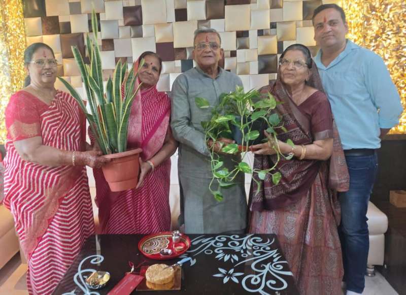 भीलवाड़ा। भाई बहन के स्नेह और भाई द्वारा बहन की सुरक्षा के संदेश के प्रतीक रक्षाबंधन पर इस बार भाई ने अपनी कलाई पर रक्षासूत्र बंधवाने के साथ ही भाई ने अपनी बहन को पौधे लगे गमले उपहार मंे दिये और उनकी सुरक्षा का वादा लिया। पर्यावरणविद् बाबूलाल जाजू के बहन विमला दरक व मंजू मालीवाल ने हर वर्ष की भांति कलाई पर राखी बांधी तो जाजू ने उपहार में 24 घंटे प्राण वायु देने वाले मनी प्लांट, स्नेक, एरिका पाम के पौधे लगे गमले भेंट किये व सुरक्षा का वादा लिया। जाजू ने कहा कि पौधे लगे गमले हम सबके साथ प्रकृति की रक्षा करेंगे। जाजू ने सभी नागरिकों से आग्रह किया है कि वे भी पौधे लगे गमलों का उपहार दे ताकि प्रकृति की प्रदूषण से रक्षा की जा सके व घरों मंे हरियाली बढ़ाकर पर्यावरण संरक्षण का संदेश दिया जा सके। इस मौके पर सुशीला जाजू व राहुल मालीवाल मौजूद थे।