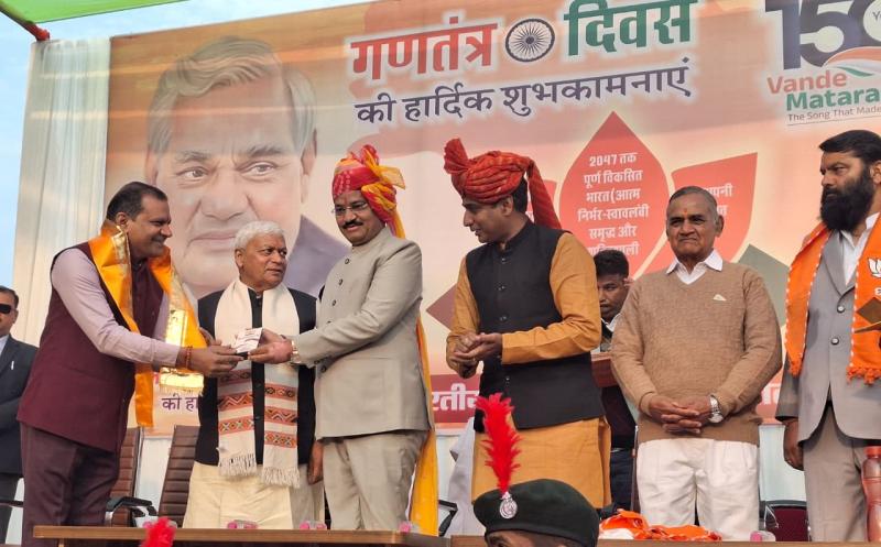 भाजपा जिला कार्यालय पर गणतंत्र दिवस के उपलक्ष में राजस्थान सरकार के उपमुख्यमंत्री प्रेमचंद बेरवा द्वारा 22 बार दुर्लभ रक्तदान कर जरूरतमंदों की जान बचाने पर अभिनंदन किया गया