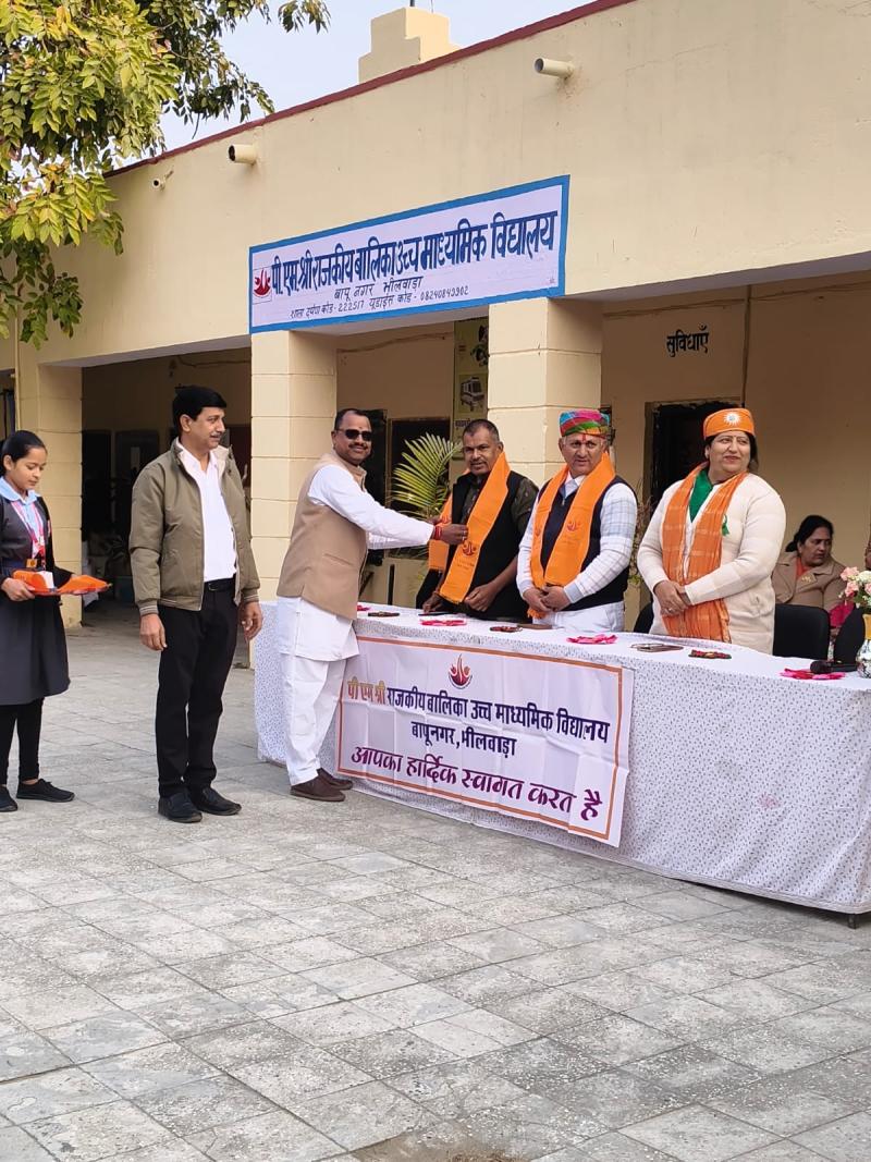 पीएम श्री राजकीय बालिका उच्च माध्यमिक विद्यालय बापूनगर में आज गणतंत्र दिवस का कार्यक्रम अत्यंत हर्षोल्लास के साथ मनाया गया ध्वजारोहण संस्था प्रधान सुनीता नानकानी द्वारा किया गया। सुनीता नानकानी ने मुख्यमंत्री के संदेश का वाचन किया,इस कार्यक्रम में मुख्य अतिथि स्थानीय पार्षद लव कुमार जोशी, विशिष्ट अतिथि लाडो स्पोर्ट्स एकेडमी के अध्यक्ष लक्ष्मण सिंह राठौड़, एसडीएमसी सदस्य हंसा पारीख, सुमित्रा वैष्णव एवं विधायक प्रतिनिधि सुनीता सोनी रहे छात्राओं ने विभिन्न देशभक्ति गीतों एवं भवई नृत्य की भी मनमोहक प्रस्तुतियां दीं। विद्यालयों की दो बालिकाओं ने आत्मरक्षा हेतु दंड प्रदर्शन भी किया।कार्यक्रम में छात्राओं के अभिभावक तथा वार्ड के प्रबुद्ध नागरिक भी उपस्थित थे कार्यक्रम का संचालन सुनीता जोशी ने किया।
