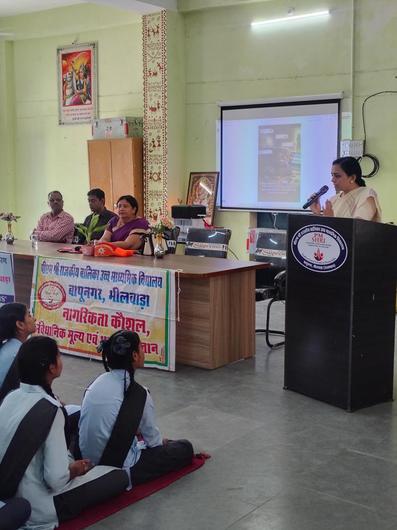 *भीलवाड़ा, 7 अप्रैल 2026:* पीएम श्री राजकीय बालिका उच्च माध्यमिक विद्यालय बापू नगर में आज जिला विधिक सेवा प्राधिकरण के तत्वावधान में विधिक सहायता जागरूकता शिविर का आयोजन किया गया। शिविर में बतौर मुख्य वक्ता जिला विधिक सेवा प्राधिकरण की ओर से न्यायिक अधिकारी *ग्रीष्मा शर्मा* ने बालिकाओं को साइबर सेफ्टी के महत्वपूर्ण पहलुओं से अवगत कराया। उन्होंने छात्राओं को सोशल मीडिया के सुरक्षित उपयोग, ऑनलाइन फ्रॉड, फेक प्रोफाइल, साइबर बुलिंग, फोटो मॉर्फिंग और डिजिटल अरेस्ट जैसे बढ़ते साइबर अपराधों से बचाव के तरीके बताए। जज ग्रीष्मा शर्मा ने कहा, _"मोबाइल और इंटरनेट आज जरूरत हैं, लेकिन बिना सावधानी के ये जोखिम भी बन सकते हैं। किसी अनजान लिंक पर क्लिक न करें, OTP शेयर न करें और साइबर अपराध होने पर तुरंत हेल्पलाइन 1930 या www.cybercrime.gov.in पर शिकायत दर्ज कराएं।"