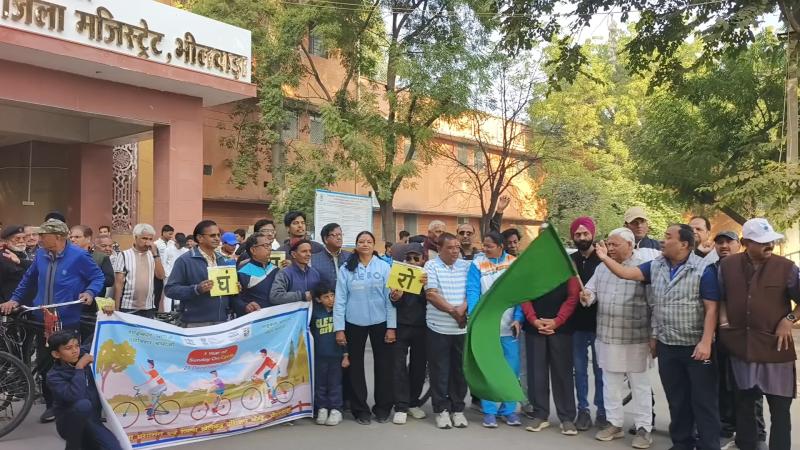 भीलवाड़ा/राज्य सरकार के 2 वर्ष पूर्ण होने के उपलक्ष्य पर आयोजित हो रहे कार्यक्रमों की कड़ी में रन फॉर विकसित राजस्थान एवं केंद्र सरकार की संडे ऑन साइकिल योजना के एक वर्ष पूरा होने के अवसर पर जिला प्रशासन एवं जिला खेलकूद प्रशिक्षण केंद्र भीलवाड़ा द्वारा जॉगिंग एवं साइकिल रैली का आयोजन किया गया। अधिक जानकारी देते हुए जिला खेल अधिकारी हेमेंद्र सिंह राणावत ने बताया कि रैलियों को सांसद महोदय दामोदर प्रसाद अग्रवाल द्वारा हरी झंडी दिखाकर रवाना किया गया। पहले साइकिल रैली को हरी झंडी दिखाकर रवाना किया गया इसके बाद रन फॉर विकसित राजस्थान रैली का आगाज हुआ। इसमें सभी खेलों के खिलाड़ियों ने बढ़ चढ़कर भाग लिया। रैलियां जिला कलक्टर कार्यालय से प्रारंभ होकर अंबेडकर सर्किल, मुरली विलास रोड, रेलवे फाटक, साबुन मार्ग होते हुए कॉलेज मैदान पर समापन हुआ। आम नागरिकों में खेलों एवं स्वास्थ्य के प्रति जागरूकता बढ़ाने के उद्देश्य से किए गए इस आयोजन में भाजपा नेता ओम सांइ राम, नंदलाल गुर्जर, कुश्ती के अंतरराष्ट्रीय प्रशिक्षक जगदीश जाट, बास्केटबॉल प्रशिक्षक निशा राजपूत, एथलेटिक्स प्रशिक्षक धर्मपाल यादव, जिमनास्टिक्स संघ के सचिव मुकेश कुमावत, क्रीड़ा भारती से जन्म जयदेव सिंह, मॉर्निंग साइकिल क्लब के सचिव अरुण संतोष मुछाल, राकेश सक्सेना एवं बड़ी संख्या में क्लब के सदस्यों, जिला खेलकूद प्रशिक्षण केंद्र के अन्य सभी प्रशिक्षकों, खेल प्रेमियों एवं सीनियर खिलाड़ियों ने उत्साह पूर्व भाग लिया।