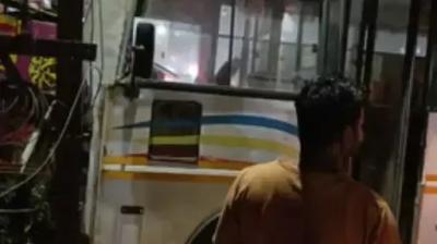 नशे में बस चालक ने मारी टक्कर, बिजली पोल से भिड़ी बस -