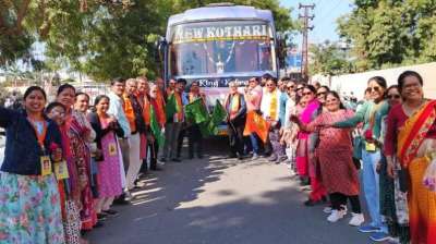 धार्मिक यात्रा महाकुंभ के लिए भीलवाड़ा से महेश फाउंडेशन का 56 सदस्य जत्था रवाना हुआ