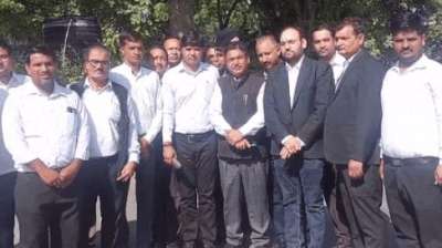 एसपी कार्यालय पर वकीलों का प्रदर्शन, तीन दिन नहीं करेंगे कार्य
