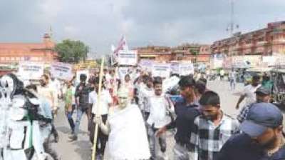 जयपुर । जयपुर को स्वच्छ और सुंदर बनाने के लिए नगर निगम हेरिटेज ने अनूठी शव यात्रा निकाली। इसमें प्लास्टिक का उपयोग नहीं करने के लिए निगम के कर्मचारी नारे...