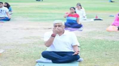 अशोक उद्यान पहुंचे केंद्रीय मंत्री शेखावत ने किया प्राणायाम