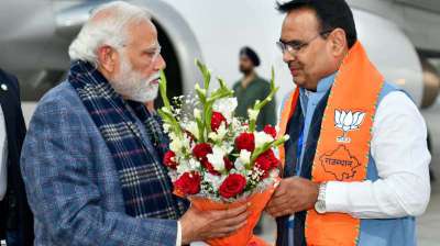 पुलिस महानिदेशक व महानिरीक्षक कॉन्फ्रेंस- मुख्यमंत्री ने किया प्रधानमंत्री श्री नरेन्द्र मोदी का स्वागत