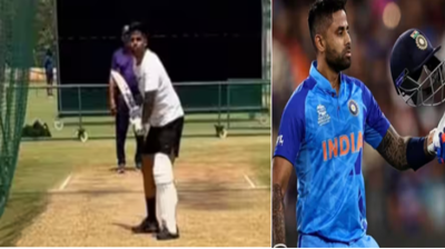 भारतीय टीम के बल्लेबाज सूर्यकुमार यादव ने सर्जरी के बाद पहली बार थामा बल्ला